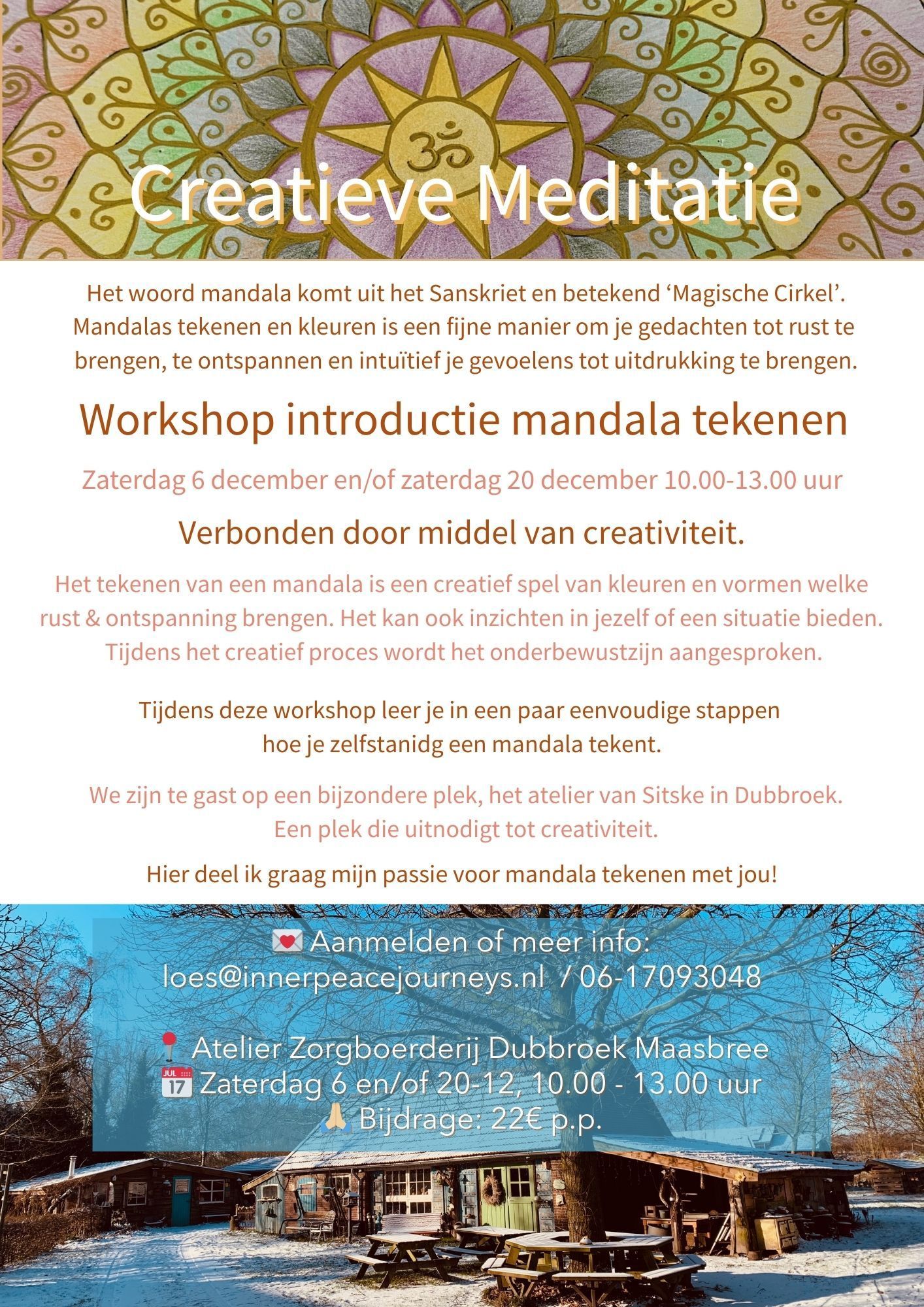We offer peaceful activities to support the journey, such as: silence, meditation & mantra, soundhealing, mandala drawing, nature walks, singing & dancing, yoga …….