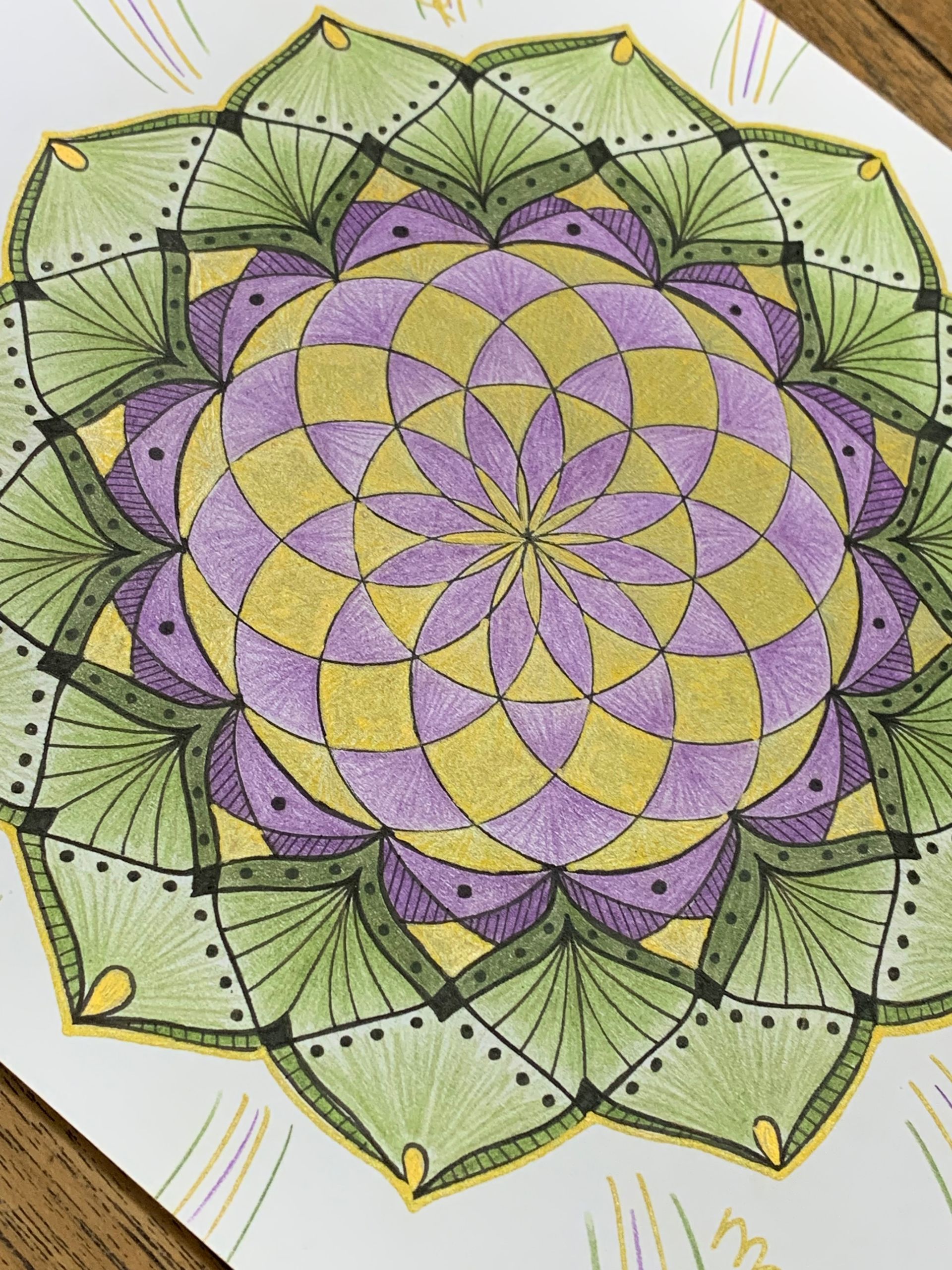 Trying to find ways, to connect with myself again, I got myself a set of color pencils, and I started to draw. Very basic and simple. It became my way to connect with myself and the people around me. Starting with drawing patterns, followed with mandalas, chakras and sacred geometry.